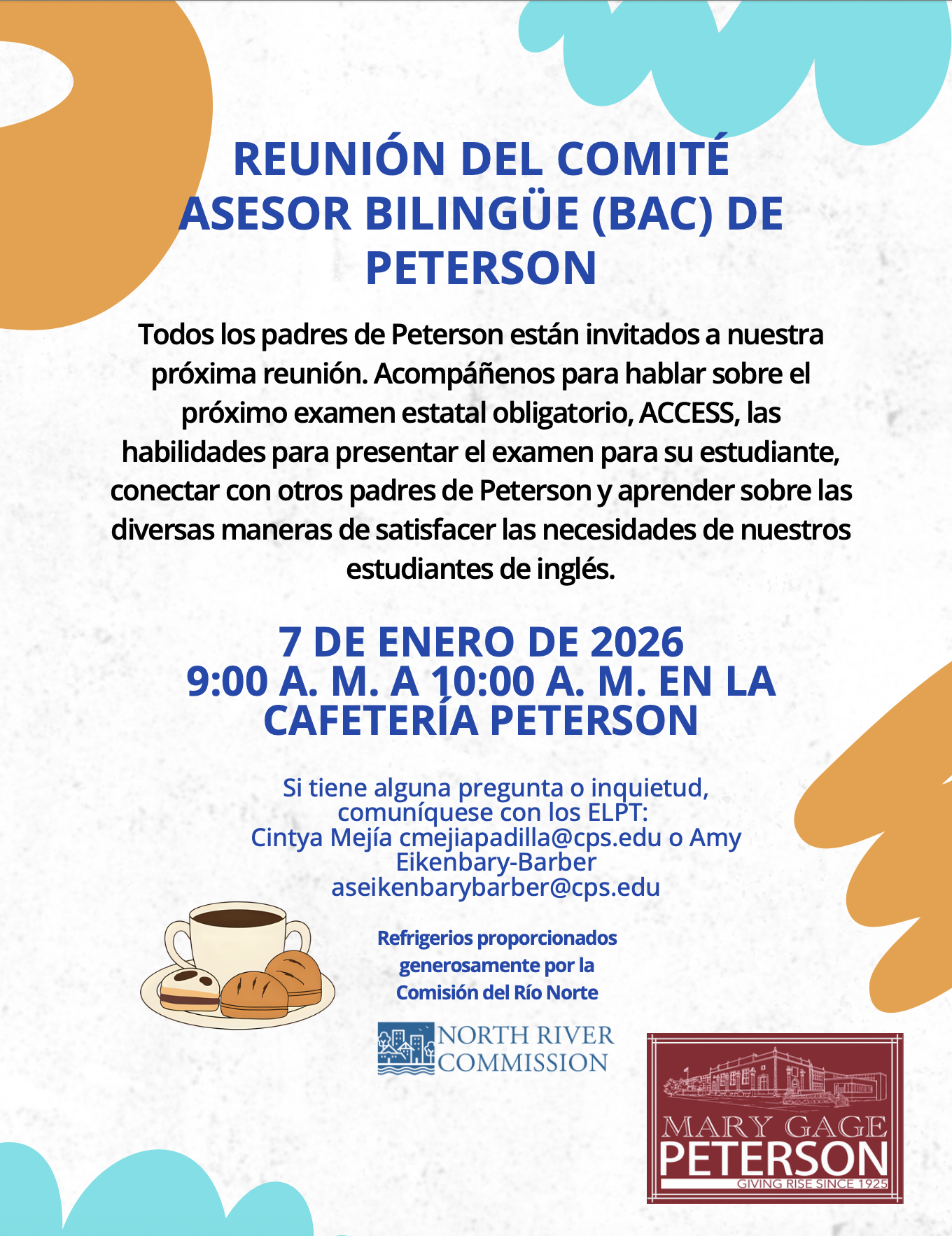 The Bilingual Advisory Committee serves to support English Language Learners (ELLs) and their families here at Peterson. The BAC supports students by working with the school's Bilingual Coordinator to review services and resources students receive during the school day. The BAC reports to the LSC regarding bilingual education issues, updates, and concerns in the school. The BAC also provides resources for Peterson parents and the community through translation services and supporting school-wide initiatives while focusing on including families who speak languages other than English.